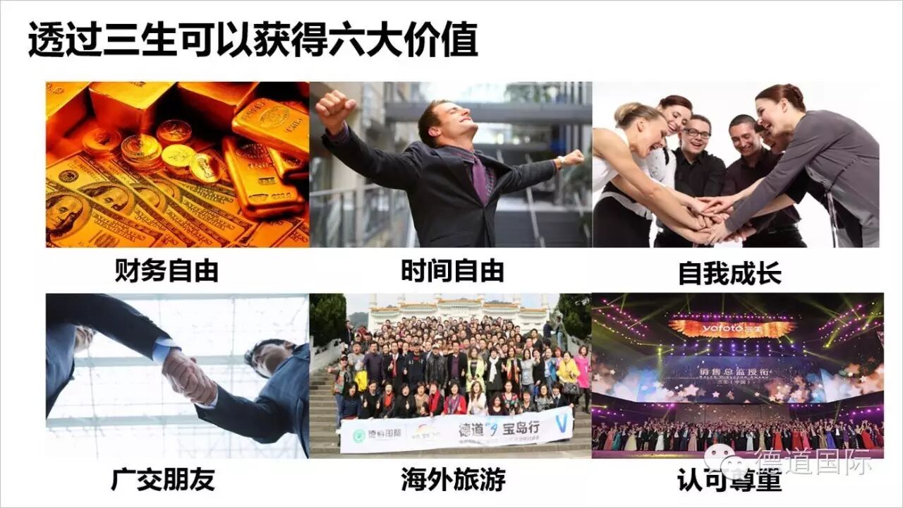 大家仔细想一想,现在从事的职业,能获得经济自由,时间自由,广交朋友,自我成长吗?还是十年前停止了成长,只为了当下的生活,您跟家人海外旅游过吗?有讲述您成功的舞台吗?三生的平台,将给您提供这些!