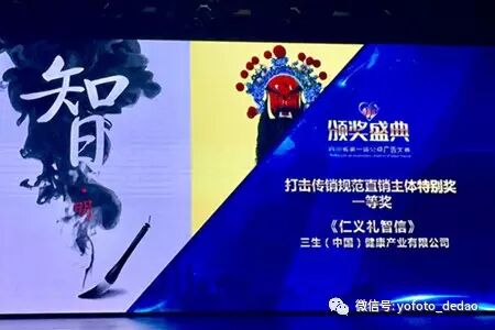 2月23日,四川省第一届公益广告大赛颁奖盛典在成都举行,三生(中国)健康产业有限公司参赛作品“仁义礼智信”从4350件参赛作品中脱颖而出,凭借出彩的设计、巧妙的构思获得打击传销规范直销主体特别奖一等奖。